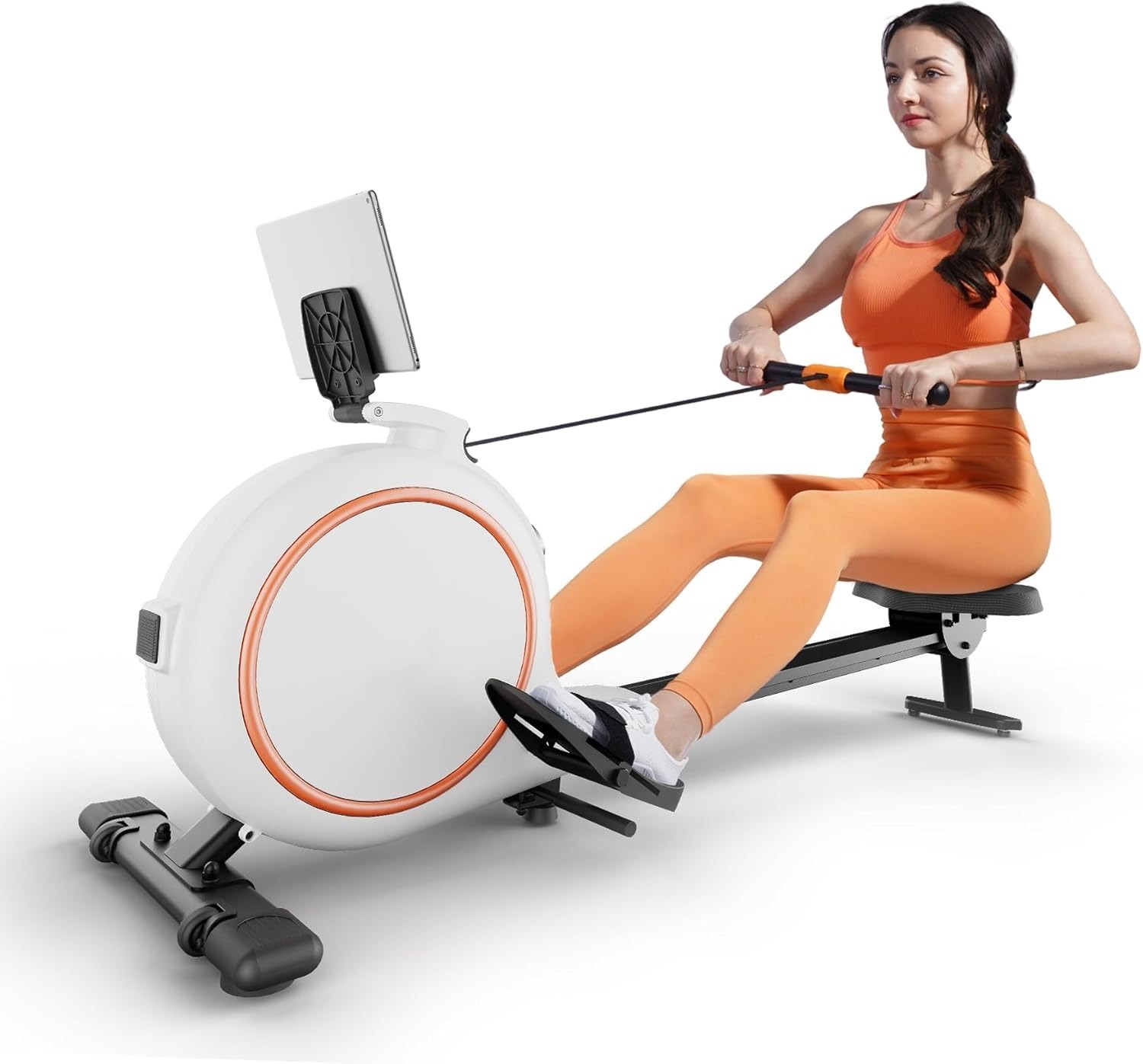 Built-in tablet holder allows for entertainment or guided workouts while rowing.