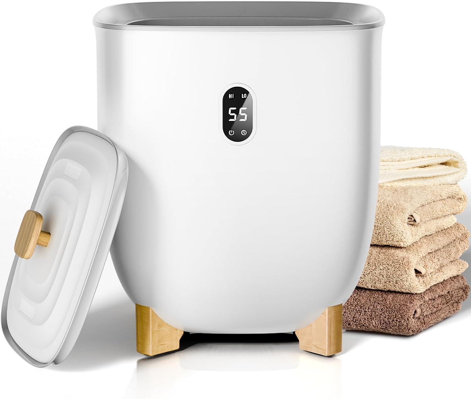 Extra-large bucket fits multiple towels, bathrobes, or blankets.Efficient warming with adjustable timer.